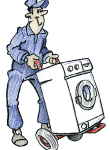 Disk-, tvättmaskiner och annan fast monterad elektrisk utrustning som ska med i flyttningen, ska demonteras av behörig fackman.
